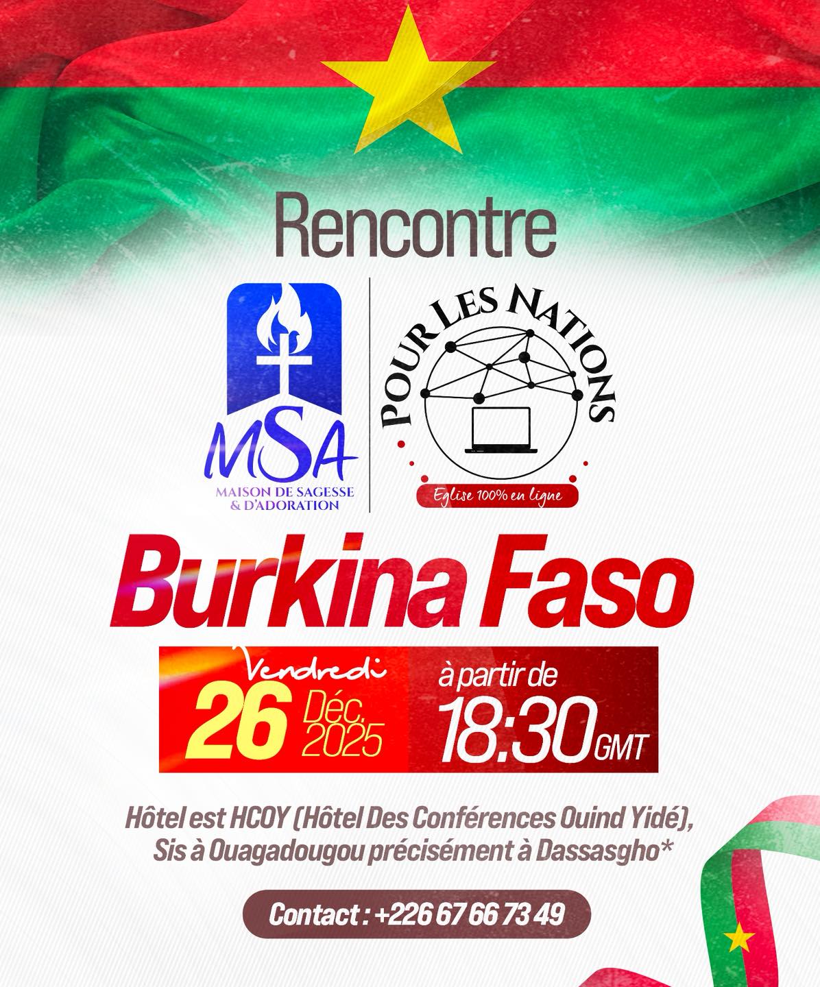Famille MSA-PLN du Burkina, nous vous donnons RDV 𝐜𝐞 𝐯𝐞𝐧𝐝𝐫𝐞𝐝𝐢 𝟐𝟔 𝐃𝐞́𝐜𝐞𝐦𝐛𝐫𝐞 pour un puissant moment dans la présence de Dieu!