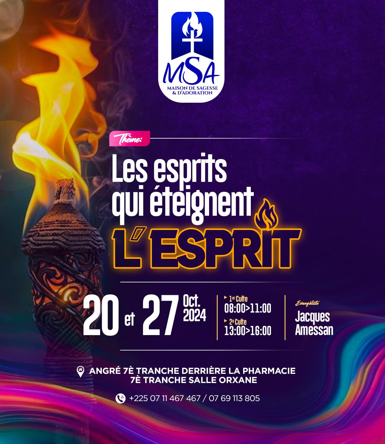 Nous aurons 2 cultes ce dimanche à LA MAISON DE SAGESSE ET D’ADORATION avec 2 thèmes différents mais complémentaires. Avec l’Evangeliste Jacques Amessan
