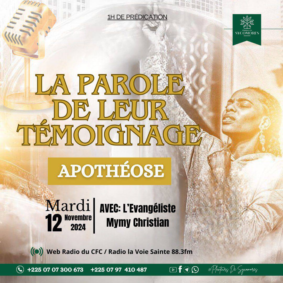 La Maison de Sagesse et d'Adoration Cocody, Angré 7ème tranche, AbidjanBonjour famille, Nous aurons 2 cultes ce dimanche à LA MAISON DE SAGESSE ET D’ADORATION avec 2 thèmes différents mais complémentaires. Avec l’Evangeliste Jacques Amessan Le 2e culte sera un […]